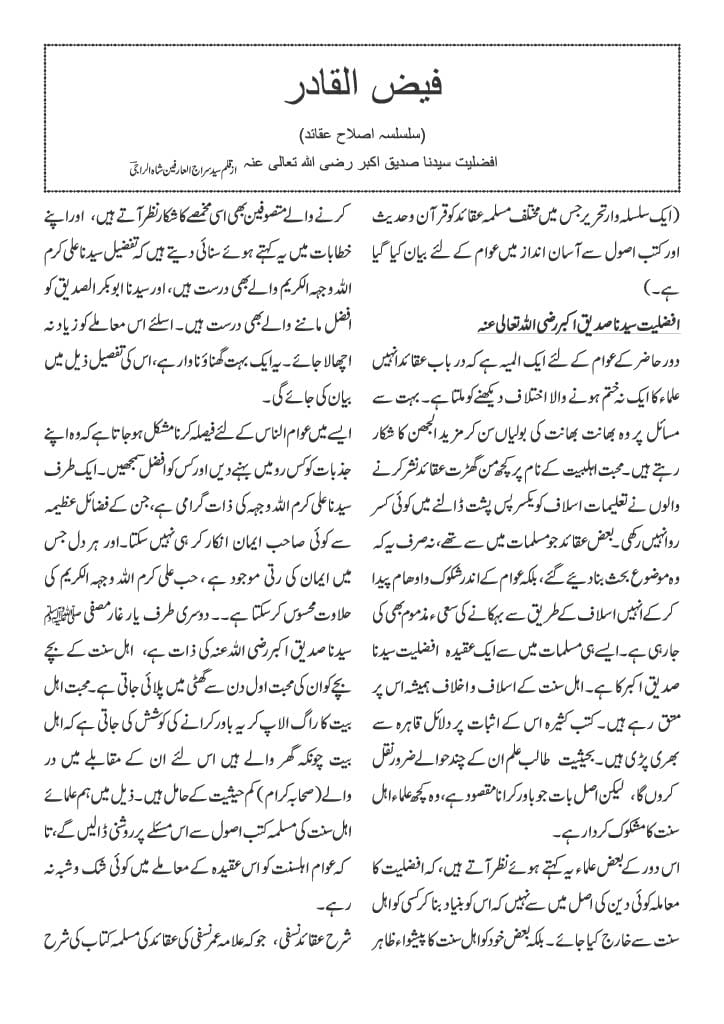 Superiority of Sayyiduna Siddique رضی اللہ عنہ